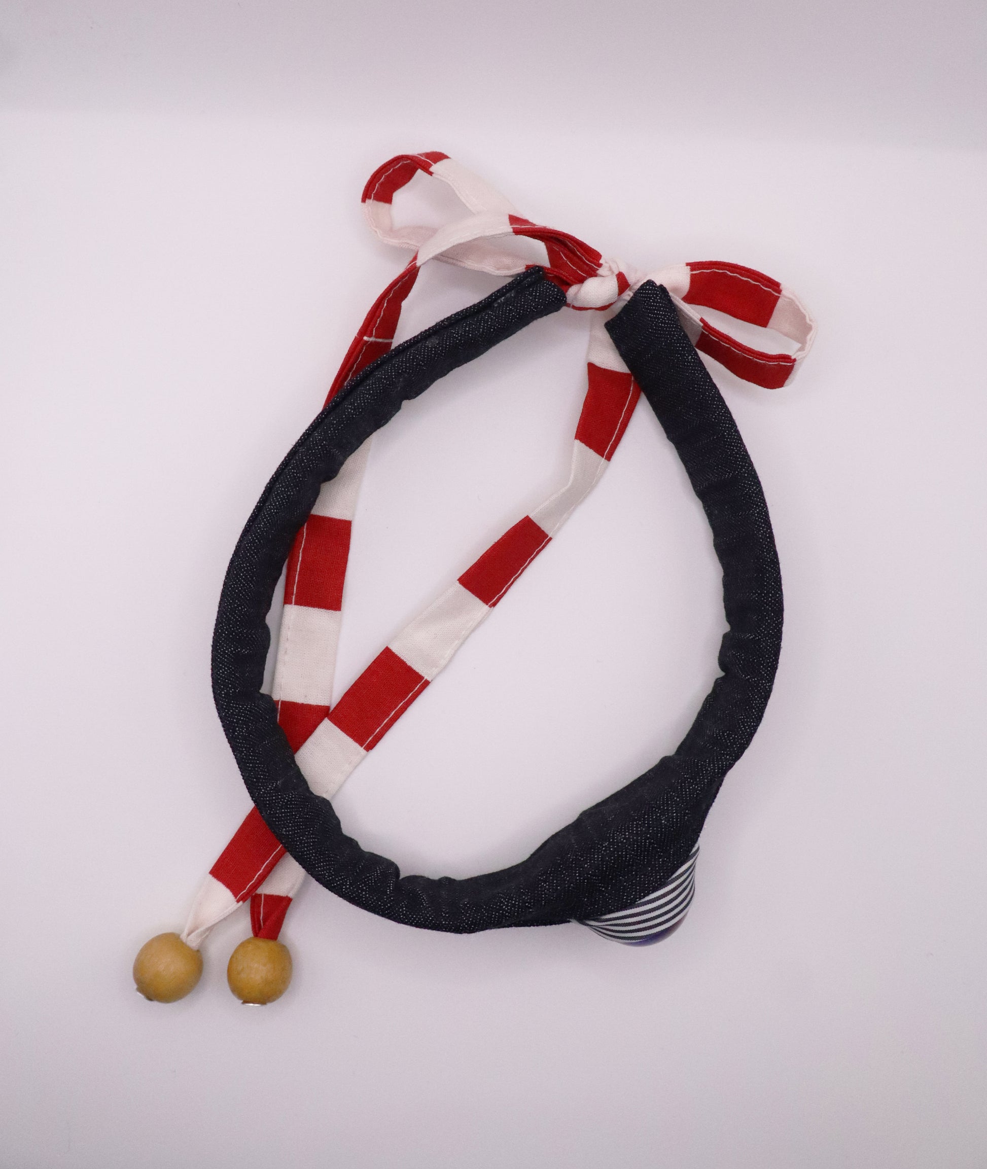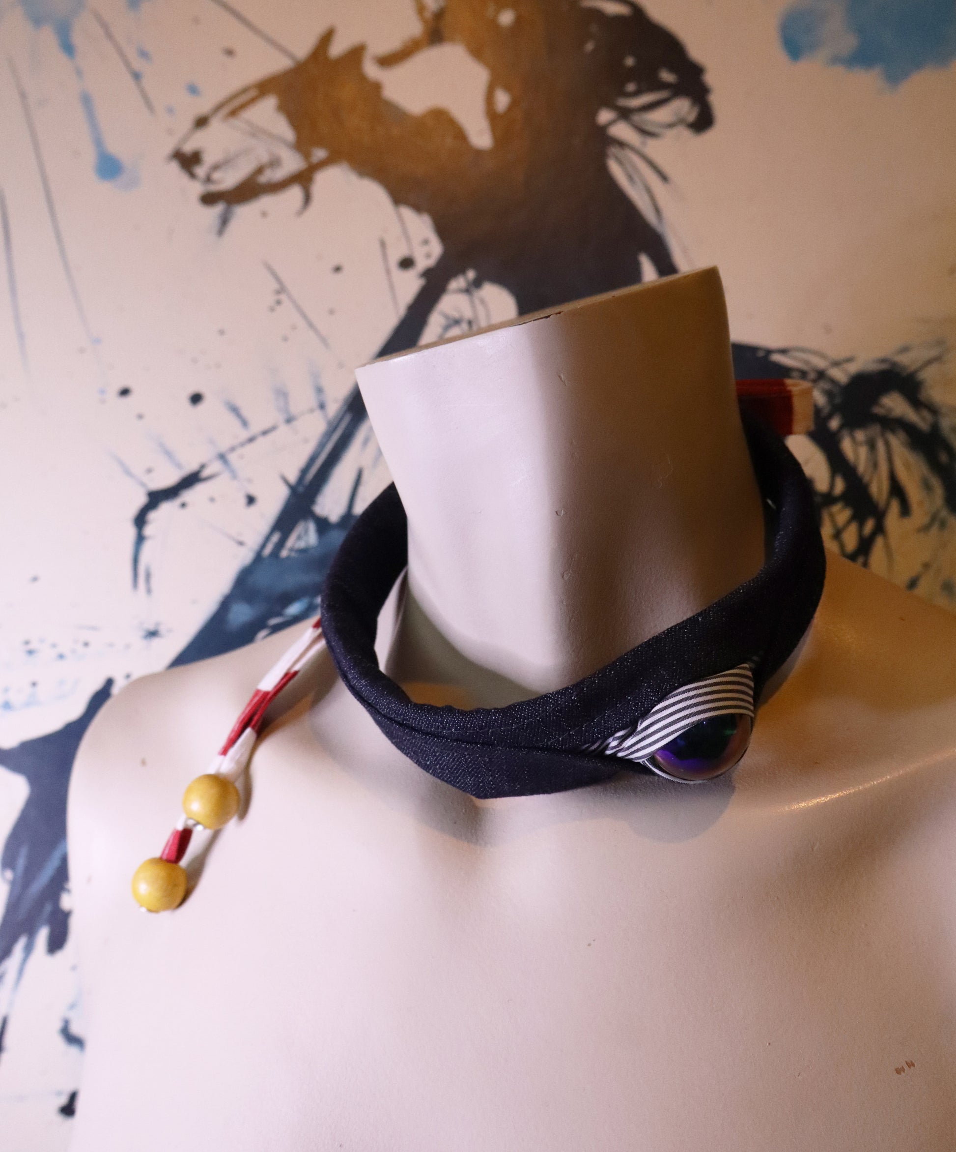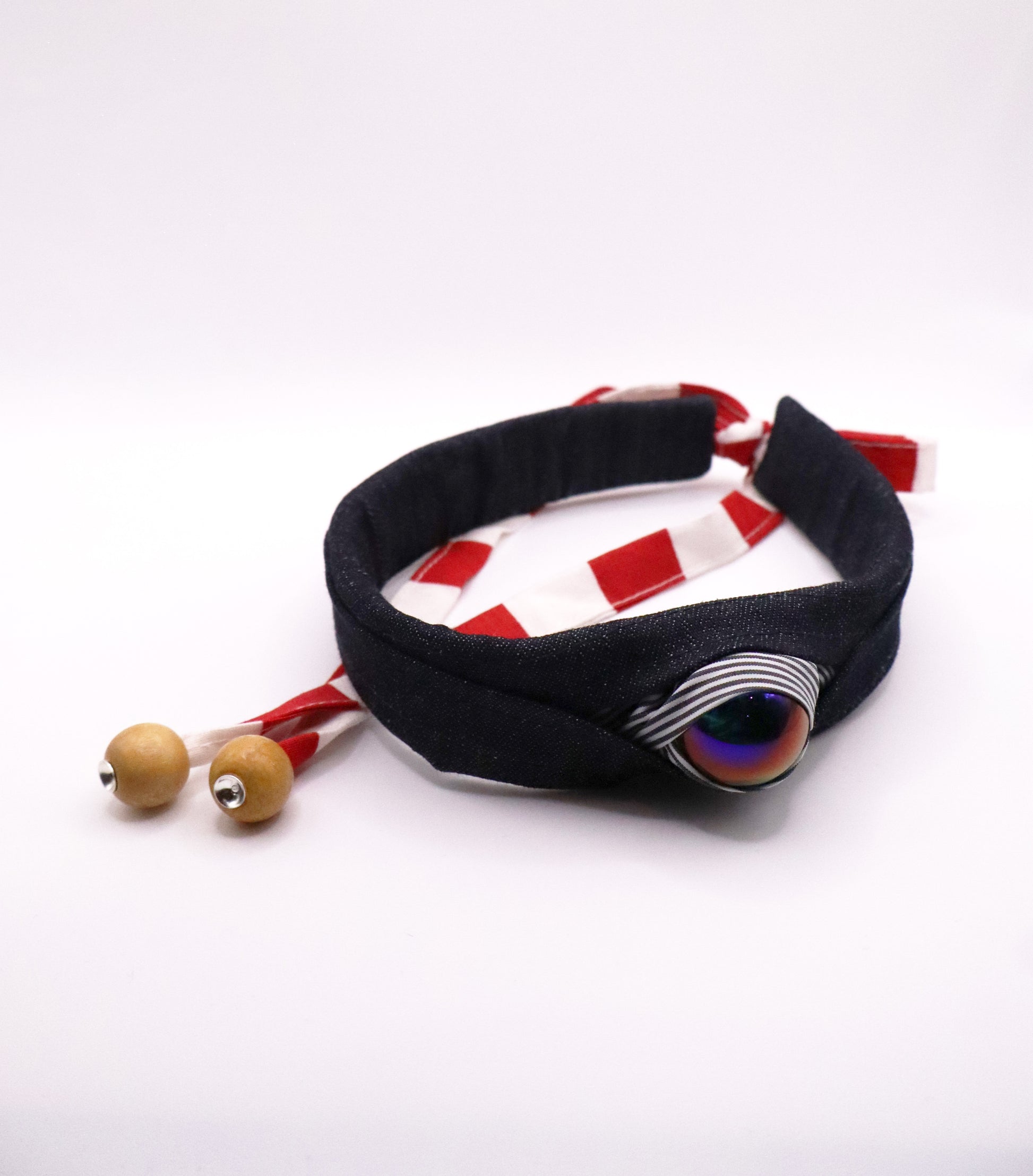 The Eyecaster embodies playfulness, wit, and sophistication. Handcrafted from denim and cotton, it combines raw texture with refined composition.